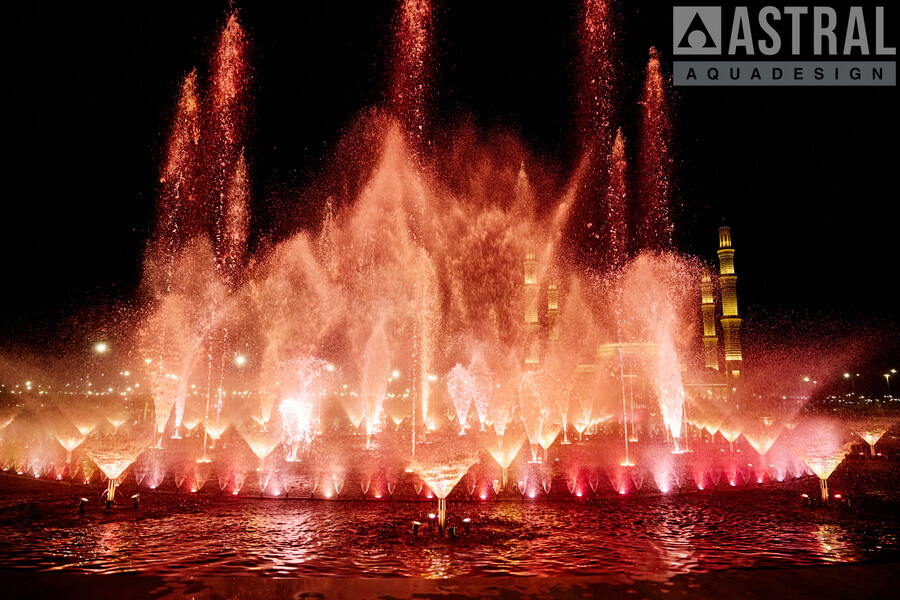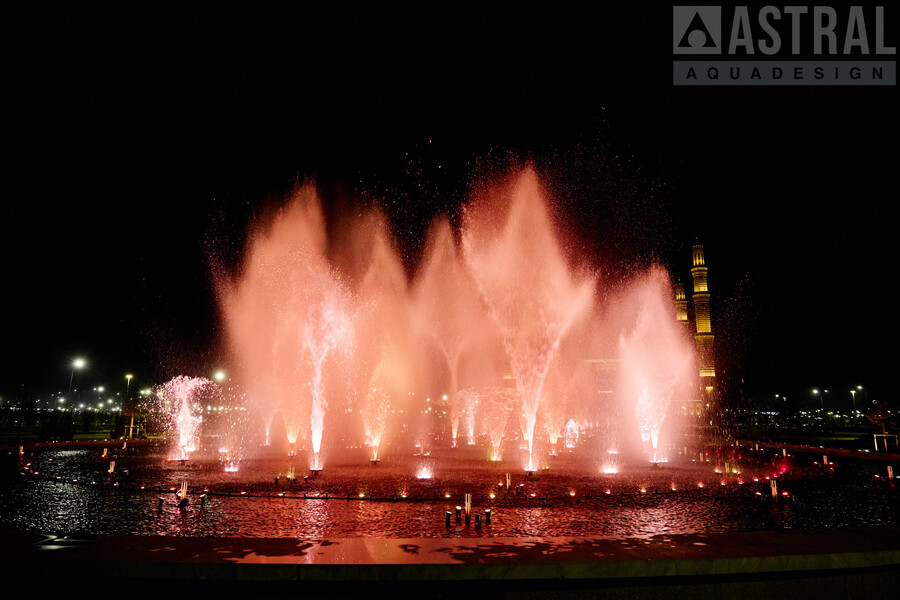 При создании этого уникального Водного шоу были применены новейшие технологии и оборудование Astralpool, а именно роботизированный форсунки, механизмы отсечки, насосы со встроенными частотными преобразователями, сверхмощные светодиодные RGBW светильники с управлением по протоколу DMX и т.д.