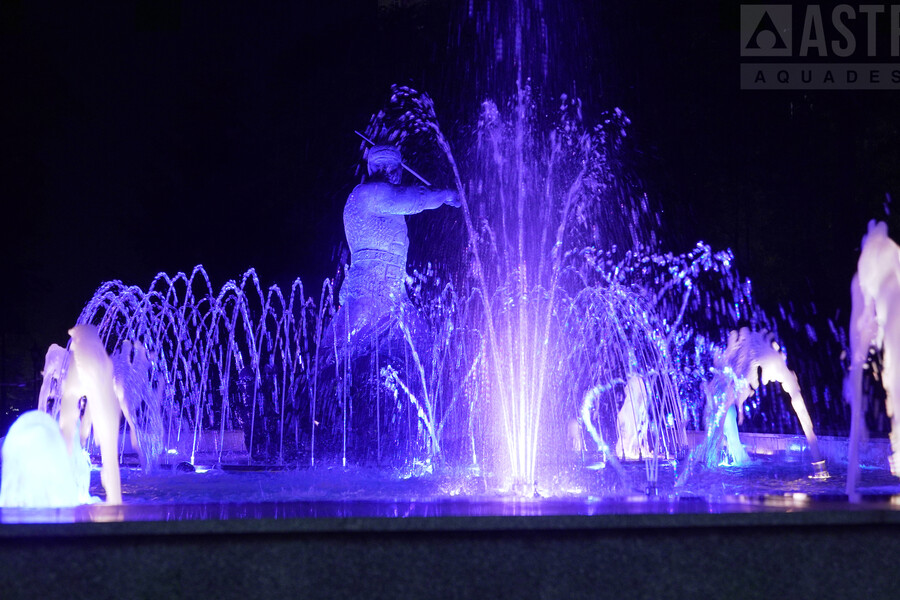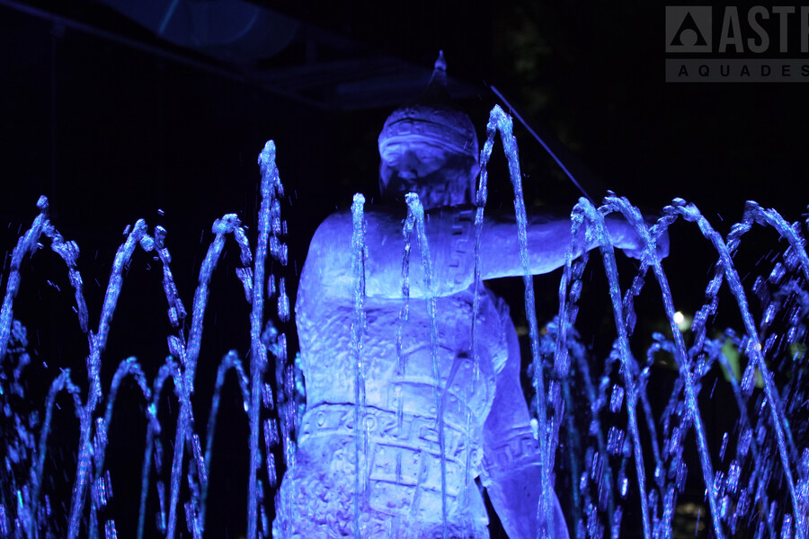- Контур 3: Кольцо диаметром 5,35 м обрамляет скульптуру Витязя, содержит 72 форсунки 8 мм;