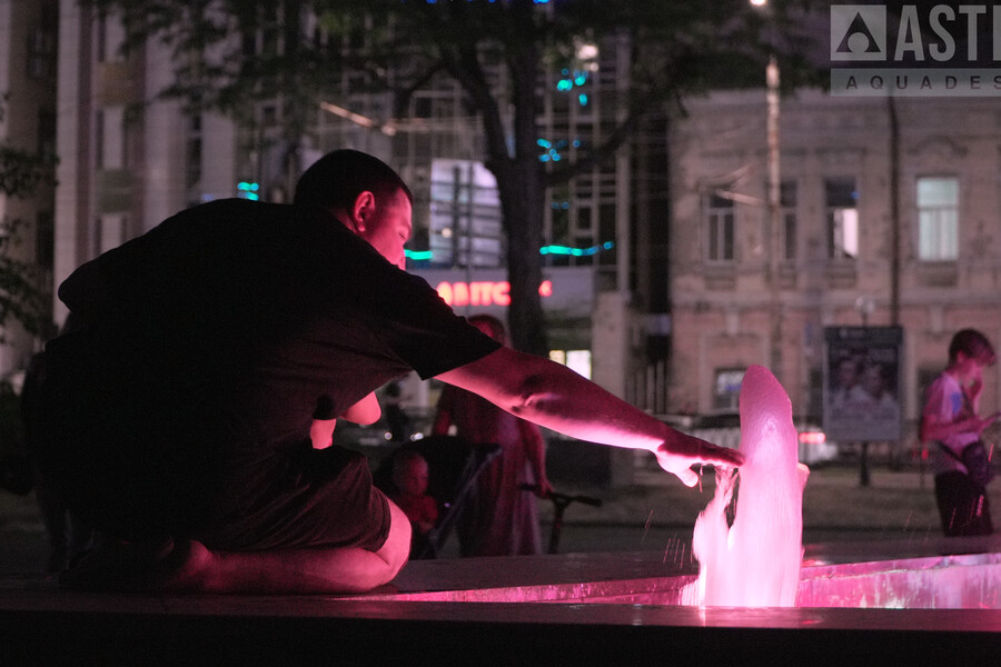 В этом году наша компания совместно с фирмой КупиБас (г. Ростов-на-Дону, www.kupibas.ru) приняла участие в капитальном ремонте 8-ми фонтанов в городе Росто-на-Дону. Первым проектом стал фонтан "Витязь" - прямоугольная чаша с габаритами по внешней стенке борта - 18х8 м. Фонтан состоит из 5-ти контуров с общим количеством светильников 16 Вт RGBW 26 шт:
