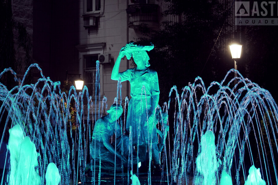 Еще одним совместным проектом с компанией KUPIBAS Group (г. Ростов-на-Дону, www.kupibas.ru) стал фонтан "Сбор винограда" диаметром 7,0 метров. Фонтан состоит из 2-х контуров водных картин:
