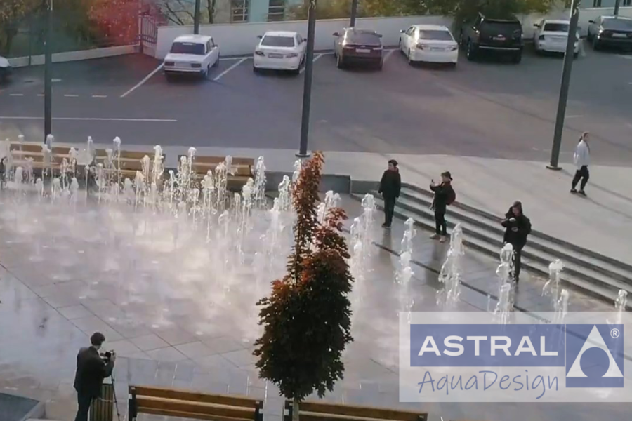 Пешеходный цветодинамический фонтан построен напротив ТРЦ Forum в Алматы (Казахстан).