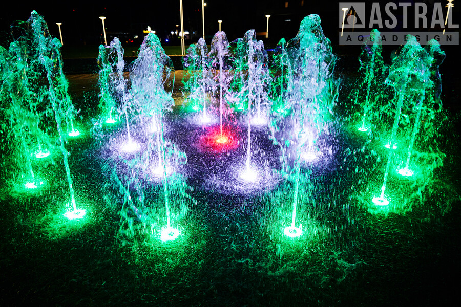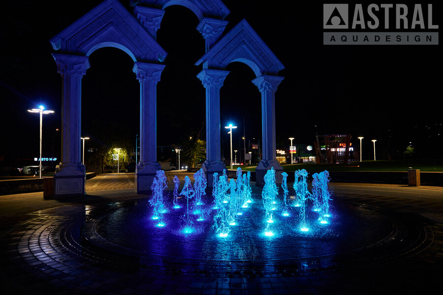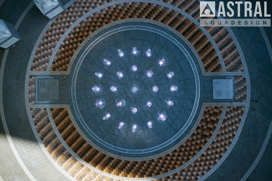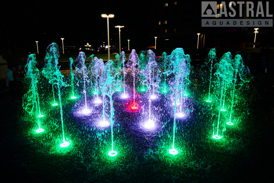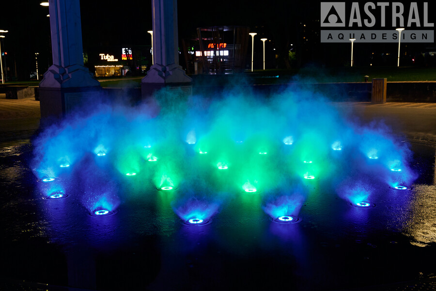 Фонтан был реализован совместно с фирмой Aqua Engineering, где специалисты нашей компании приняли участие в поставке фонтанного оборудования.