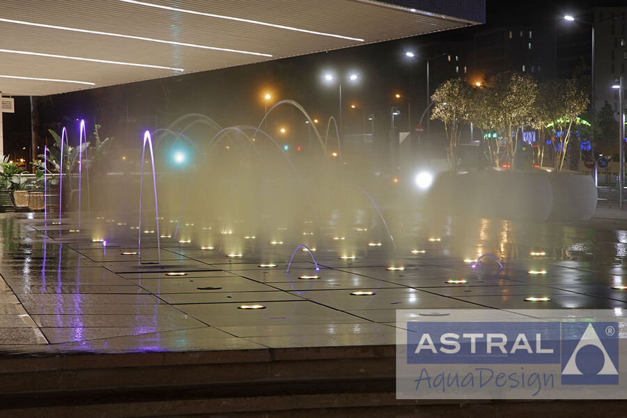 Новый пешеходный фонтан украшает одну из площадей в Тбилиси (Грузия). Авторы проекта задумали его как большую прогулочную зону где можно освежиться в жаркий день. Дело в том что здесь нет пышных пенных струй которые могут окатить прохожих брызгами. Водную картину образуют аккуратные водные столбы и гладкие, как будто стеклянные прыгающие струи. Время от времени включаются туманные насадки, насыщая воздух влагой. Мягкая подсветка которая включается с наступлением темноты органично сочетается со стилем освещения всей площади. Тщательно продуманная система фильтрации защищает оборудования от осаждения минералов растворенных в воде в этом регионе.