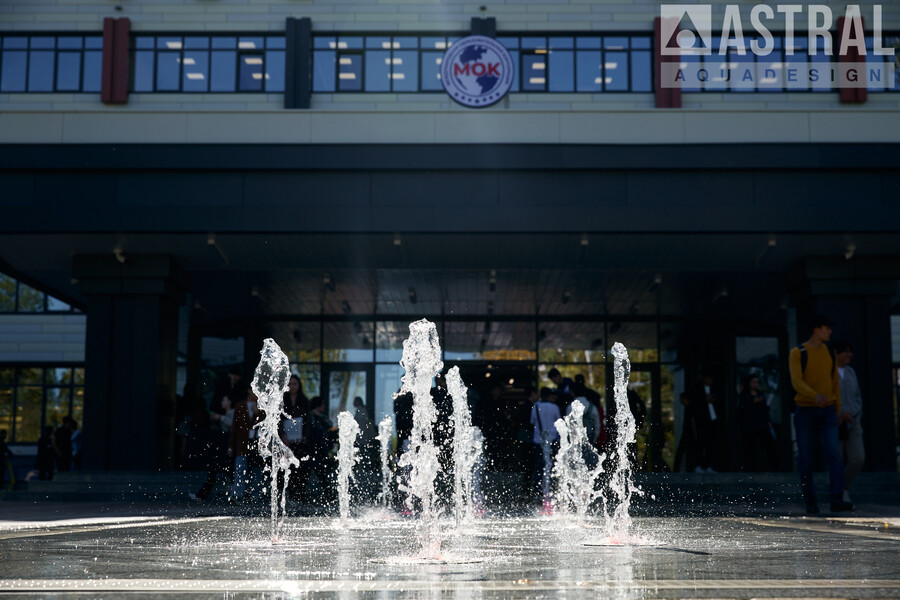 Еще один сухой динамический фонтан был запущен в сентябре 2023 года возле университета ГазКаса в Алматы в рамках благоустройства территории. Фонтан состоит из 13 динамических струй высотой до 2,0 метров. Форсунки управляются 13 быстродействующими подводными клапанами и 1 насосом мощностью 3,5 кВт/380В с частотным регулированием. Водная картина дополнена системой "мягкого" тумана, который превосходно смотрится в ночное время благодаря работе кольцевых светодиодных светильников 20Вт/24В. Общий габаритный размер фонтана составляет 12х4 метра.
