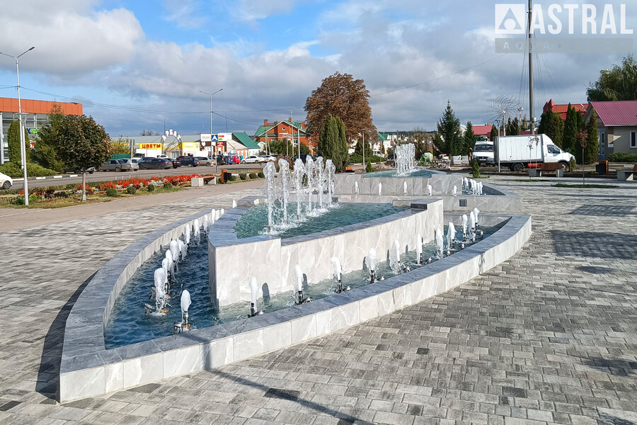 Компания Посейдон (www.poseidon31.ru) в этом году реконструировала два фонтана в рабочем посёлке Красная Яруга (Белгородская область). Благодаря совместной работе со специалистами Астрал Аквадизайн был произведен расчет, подбор и поставка основного фонтанного оборудования, такого как насадки, светильники, насосы и система управления. Обновленный фонтан стал украшением центральной площади посёлка.