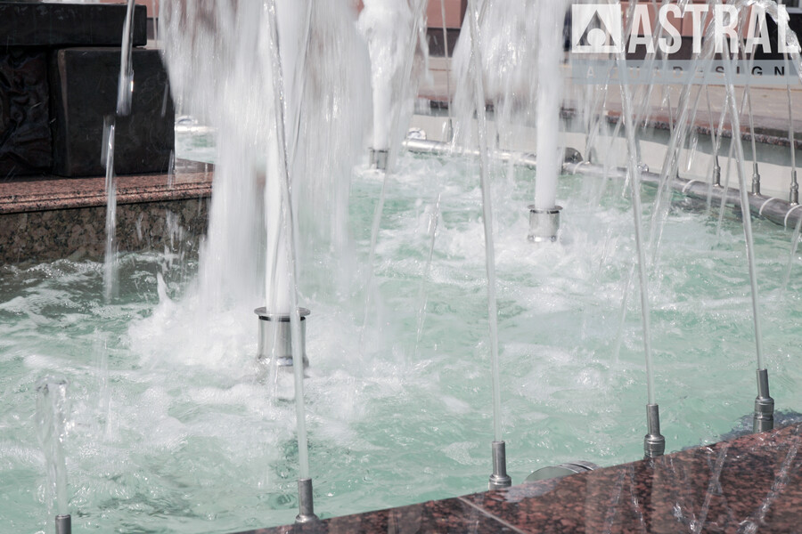 - 7 пенных струй диаметром 50 мм и высотой до 2,0 м обрамляют центральную скульптуру;