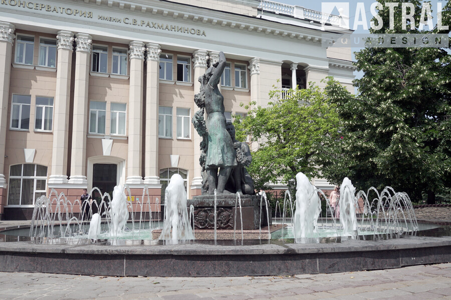 Следующим объектом в рамках реконструкции девяти главных Ростовских фонтанов стал фонтан "Девушки, собирающие виноград" диаметром 7,0 м. Фонтан располагается перед входом в Ростовскую государственную консерваторию имени С.В.Рахманинова. Водная композиция состоит из двух контуров: