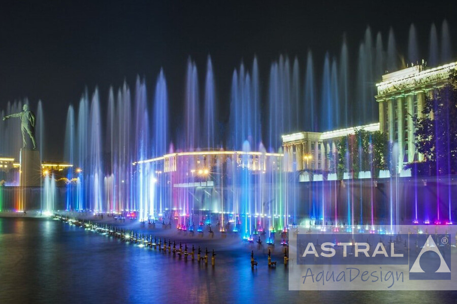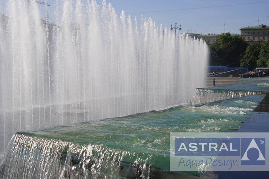 Грандиозный фонтанный комплекс на Московской площади в Санкт-Петербурге состоит из большого цветомузыкального фонтана с пышной водной картиной созданной множеством насадок, а также несколькими водопадами. Более десятка небольших чаш расположены по периметру площади. Данный фонтанный комплекс стал одним из первых масштабных проектов реализованных нашими сотрудниками. При строительстве использовано надежное оборудование изготовленное на заводах Европы.