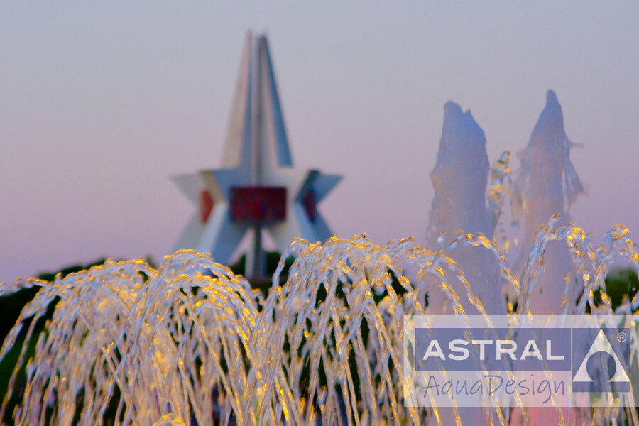 Напротив Кургана Бессмертия построен цветодинамический фонтан. Круглая чаша диаметром 22 метра, имеет 2 зоны. В центральной множество насадок, включая кольцевые, создают богатый водный рисунок. Вокруг нее создан циферблат оформленный одиночными струями которые служат стрелками. Они работают автоматически и переключаются в течение суток.