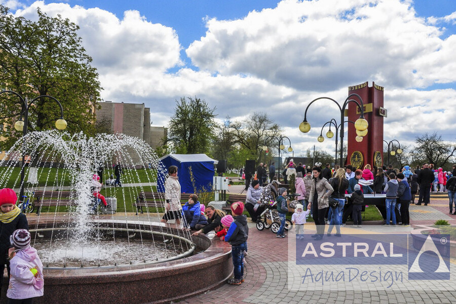 Очередной фонтан украсил один из белорусских городов - Каменец. Лаконичная композиция образована при помощи кольцевой насадки с множеством форсунок создающих параболические струи сходящиеся к центру. Круглая чаша, облицована материалом напоминающим гранит имеет диаметр 3,5 метра
