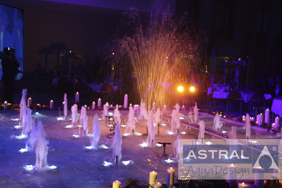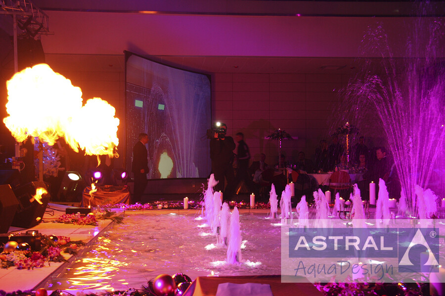 Этот интерьерный фонтан построен в офисе авиакомпании Аэрофлот в Мелькисарово к торжественному мероприятию. Водную композицию создают множество пенных насадок, а также многоструйные и ротационные. Реализация проекта проходила в ускоренном темпе при непосредственном участии наших специалистов.