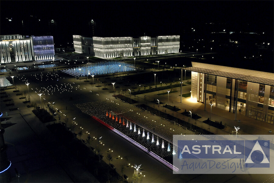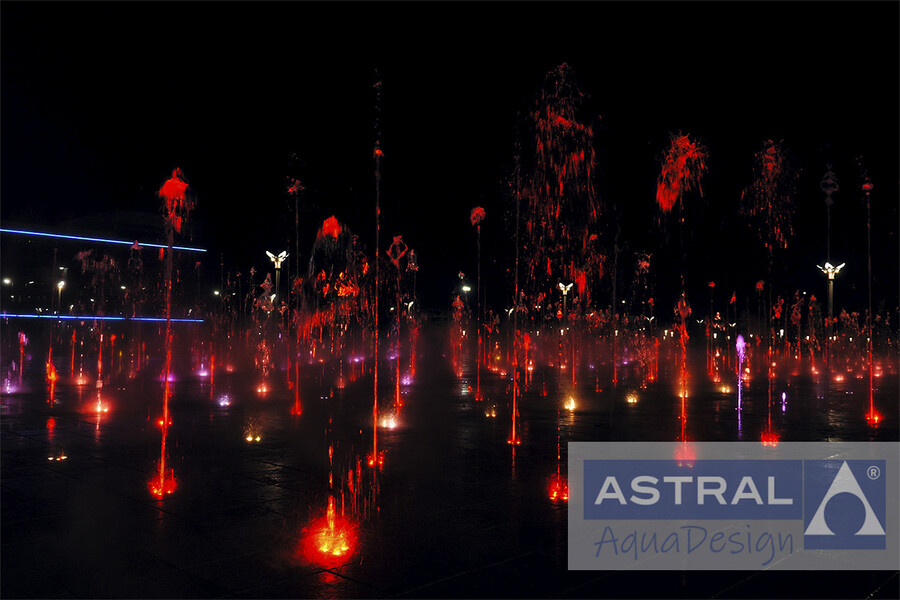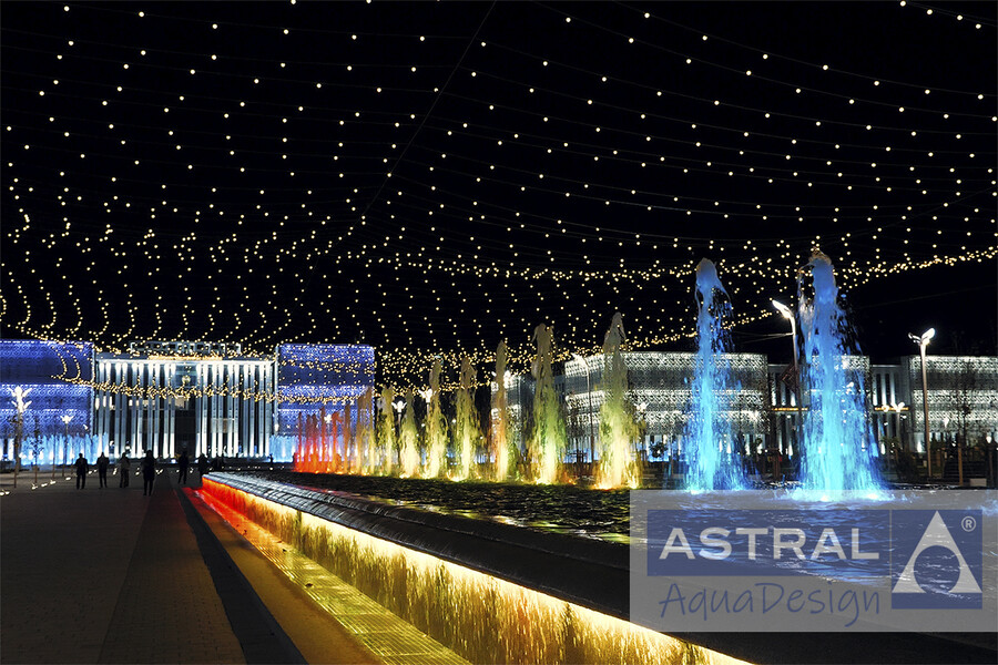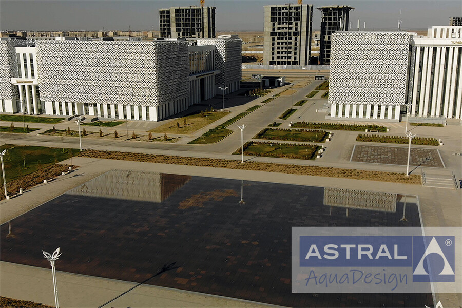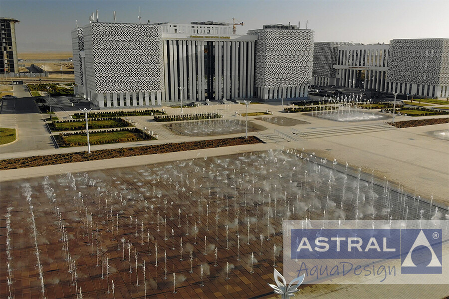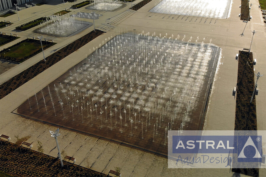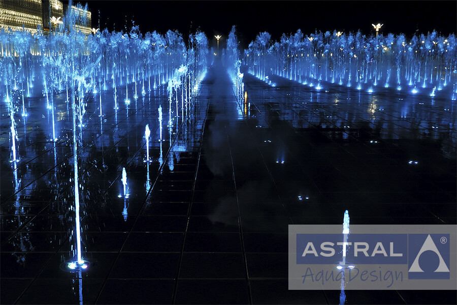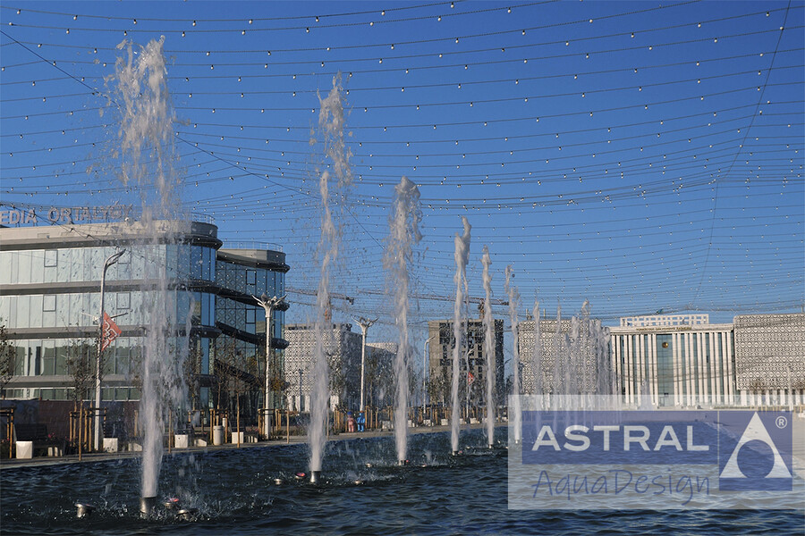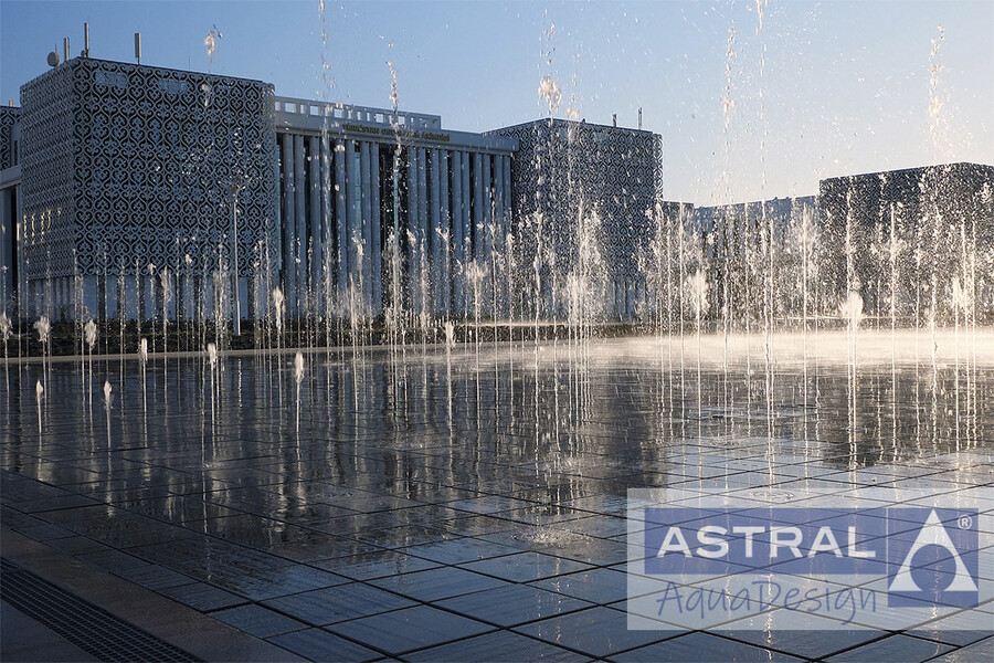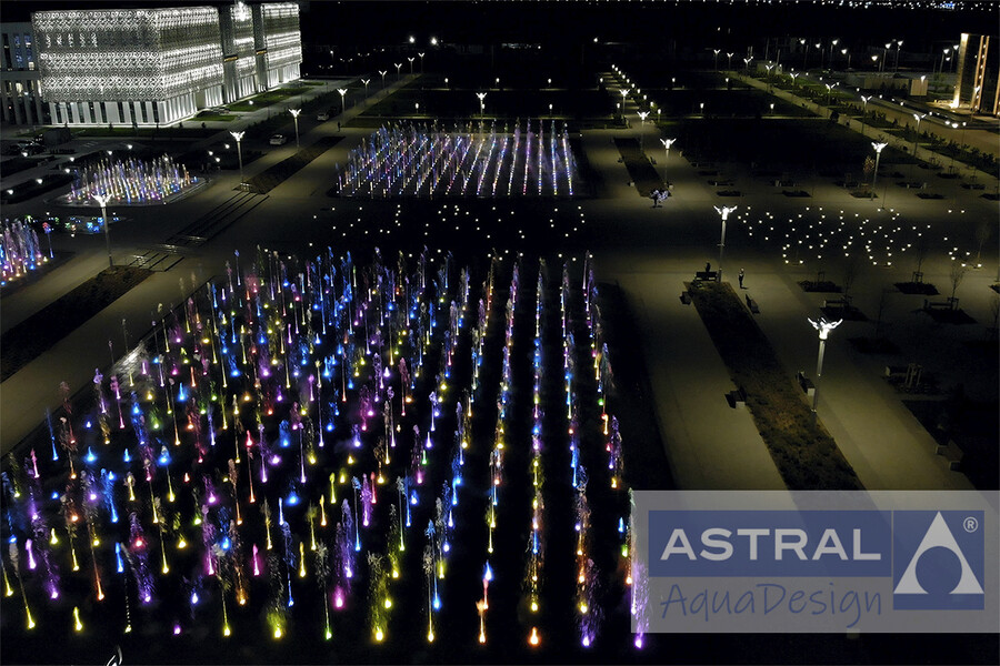 Грандиозный фонтанный комплекс на площади Нур-Султан в городе Туркестан (Казахстан) введен в эксплуатацию в конце 2020 года. Он состоит и двух пешеходных цветодинамических фонтанов общей площадью 3500 м2 и двух чашных с общей площадью зеркала воды 792 м2.
