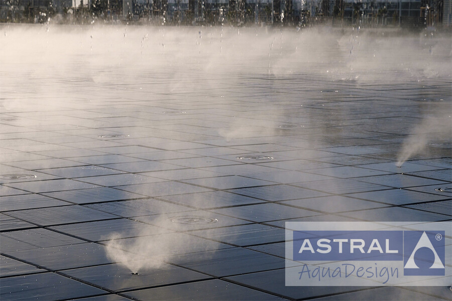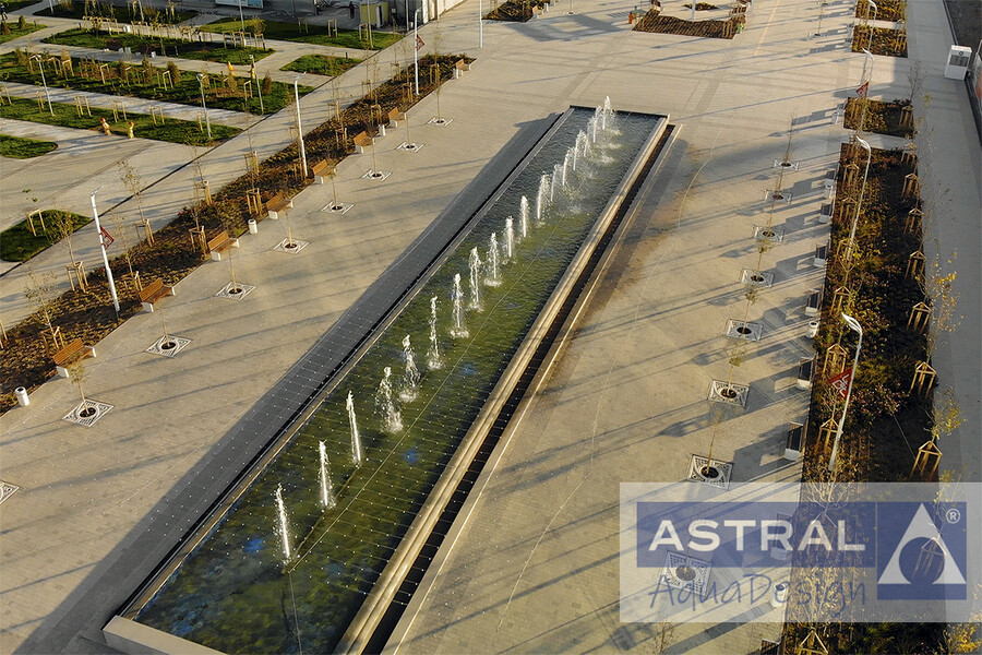Управление фонтанным комплексом реализовано посредством системы Syncronorm. Вода в фонтанном комплексе безопасна, поскольку тщательно фильтруется и дезинфицируется.