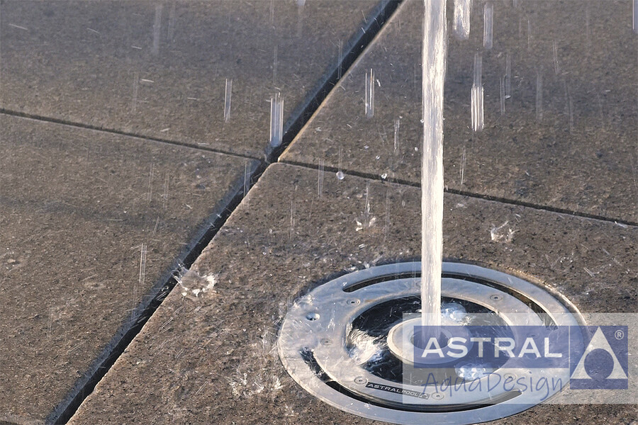 Водный рисунок в двух чашных фонтанах образуют 36 пенных насадок CASCADE 80 с высотой струй до 2 метров. В вечернее время их подсвечивают 108 подводных светильников из нержавеющей стали NIQ, RGB+W. Борта чаш оформлены светодиодной лентой RGB+W.