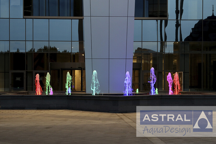 Цветодинамический фонтанный комплекс, состоящий из четырёх водных объектов построили напротив главного входа в торгово-развлекательный центр Грозный Молл. Три пешеходных фонтана окружают главный фонтан с чашей в форме звезды. Водную композицию во всем комплексе создают 38 пенных струй. Еще один пешеходный фонтан с 22 струями построен на берегу реки Сунжа.