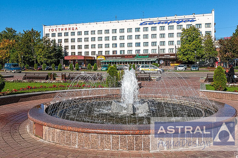 Цветодинамический фонтанный комплекс, состоящий из трех круглых чаш, диаметром 5 метров каждая, построен на площади Новополоцка (Беларусь) при непосредственном участии наших сотрудников. В проекте использовано оборудование Евпропейских компаний.