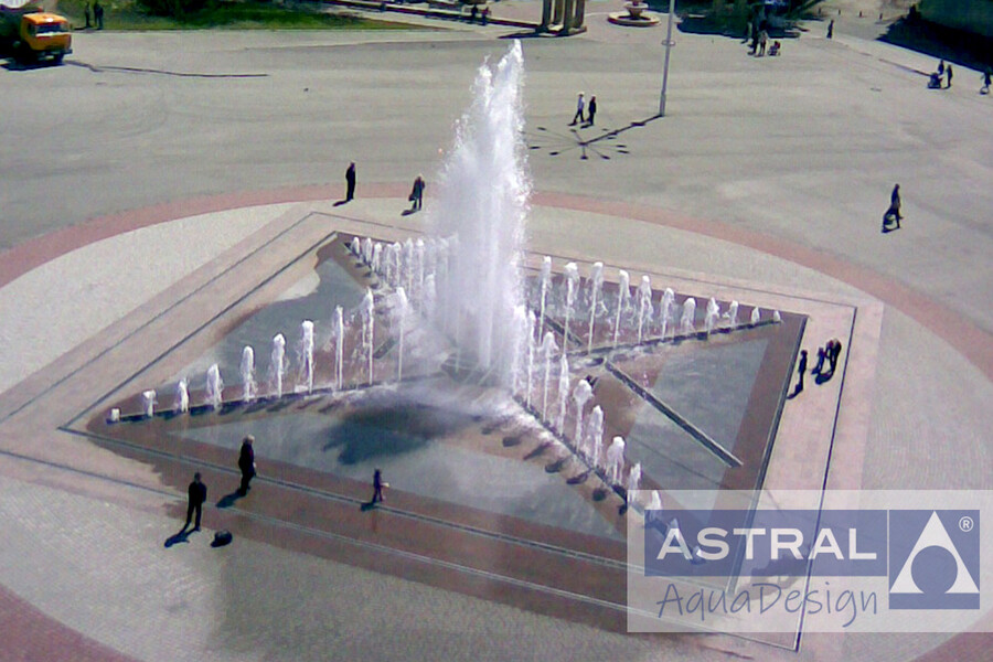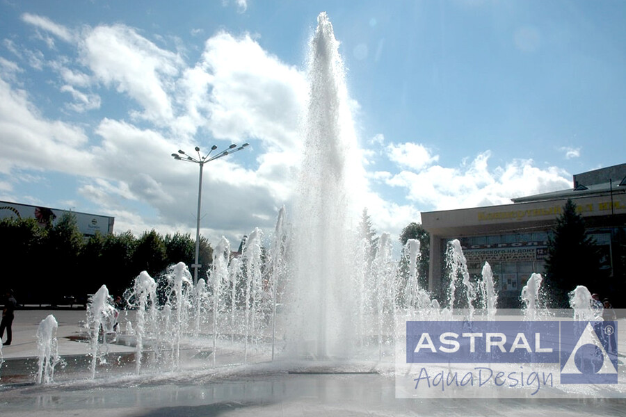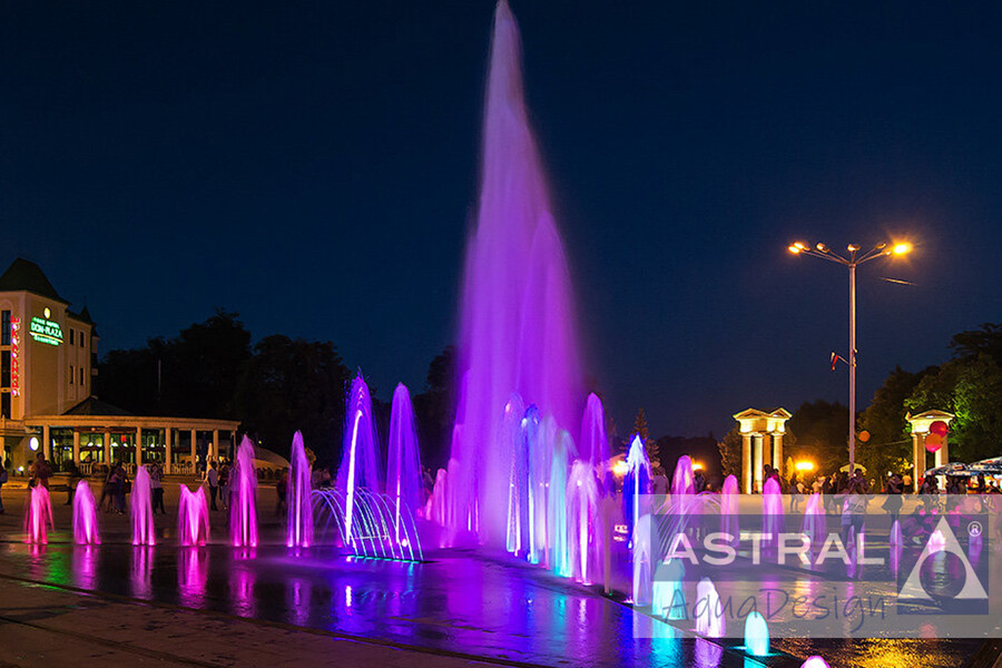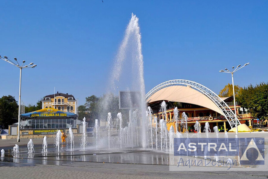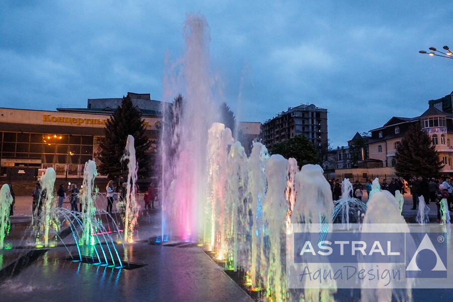 Пешеходный фонтан с высокими пенными столбами был построен нашими сотрудниками к празднованию 180 летнего юбилея города. Его торжественный пуск происходил при большом стечении народа. Площадь чаши более 100 квадратных метров. На момент строительства это был самый большой фонтан юга России. Со временем он стал визитной карточной города обязательной к посещению туристами. Строительство и монтаж оборудования помогли осущетсвить наши партнеры компания "Мега-Мастер+"