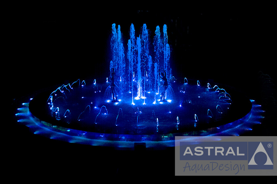 Три скульптуры, изображающие балерин украшают центр чаши. Их пышные юбки создают водные струи, это стало возможно в результате совместной работы местных скульпторов и инженерной мысли.