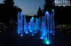 Водную картину создают моноструйные форсунки диаметром 16 мм, разбитые на 4 контура общим количеством 40 шт. и высотой до 2,5 метров. Фонтанные струи подсвечиваются светодиодными светильниками серии Astral mini RGB мощностью 8 Вт. Габаритные размеры композитного решетчатого настила составляют 10,5 х 4,6 метров, который в свою очередь обрамлен ландшафтными тротуарными светильниками.