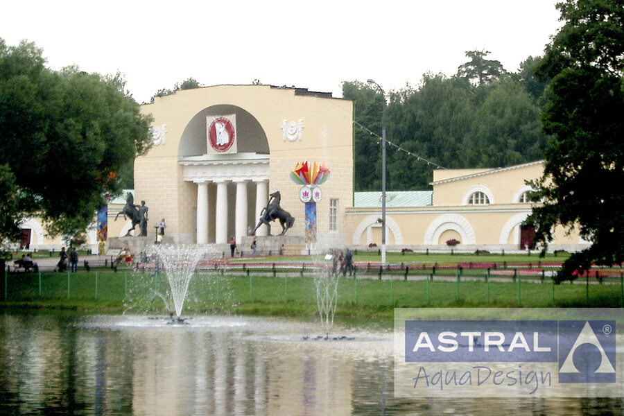 Установка плавающих фонтанов в парке Кузьминки в Москве