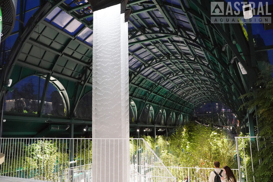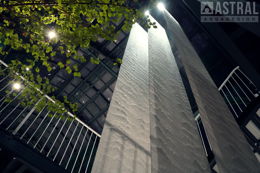Текстурный водопад "Кольчуга" является идеальным декоративным решением для внутренних помещений отелей, торговых центров и мероприятий благодаря своей привлекательности и интеграции с окружающей средой. Водопад изготовлен из нержавеющей стали, чтобы гарантировать максимальную устойчивость к ржавчине. Максимальный эффект достигается в вечернее время при включенной подсветке. Данную конструкцию можно дополнить проекцией от лазера или световых голов.