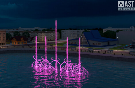 Плоскостной круглый фонтан диаметром 20,0 метров с современной арт-инсталляцией будет располагаться в центре парковой зоны города Петрозаводск. Мультимедийное Водное шоу станет настоящим подарком для жителей города и его гостей.